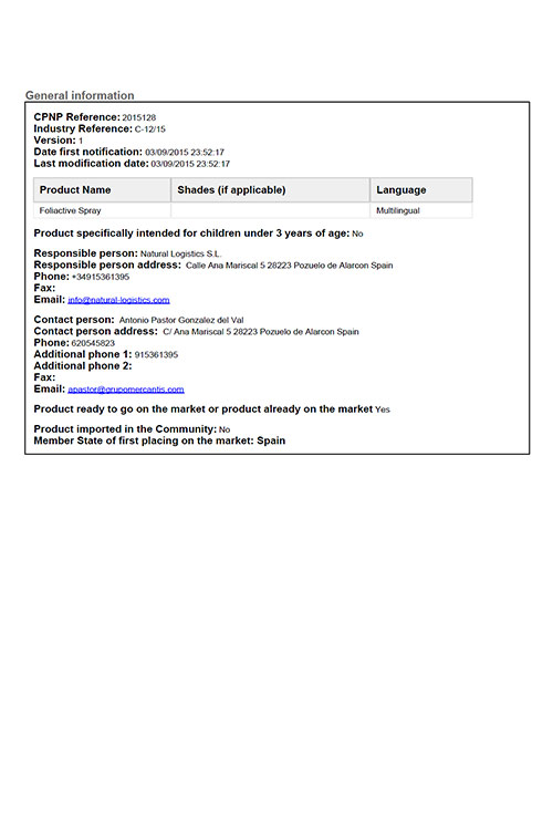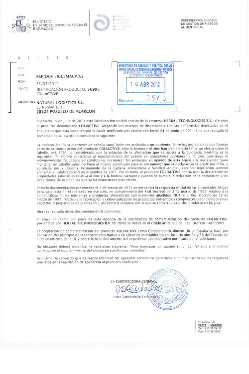 FOLIACTIVE PILLS: Dispose de toute la réglementation nécessaire approuvée par l’Union Européenne.